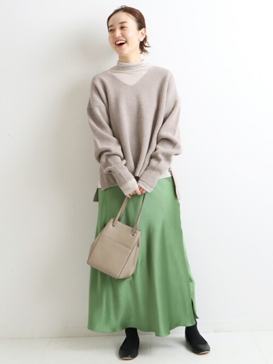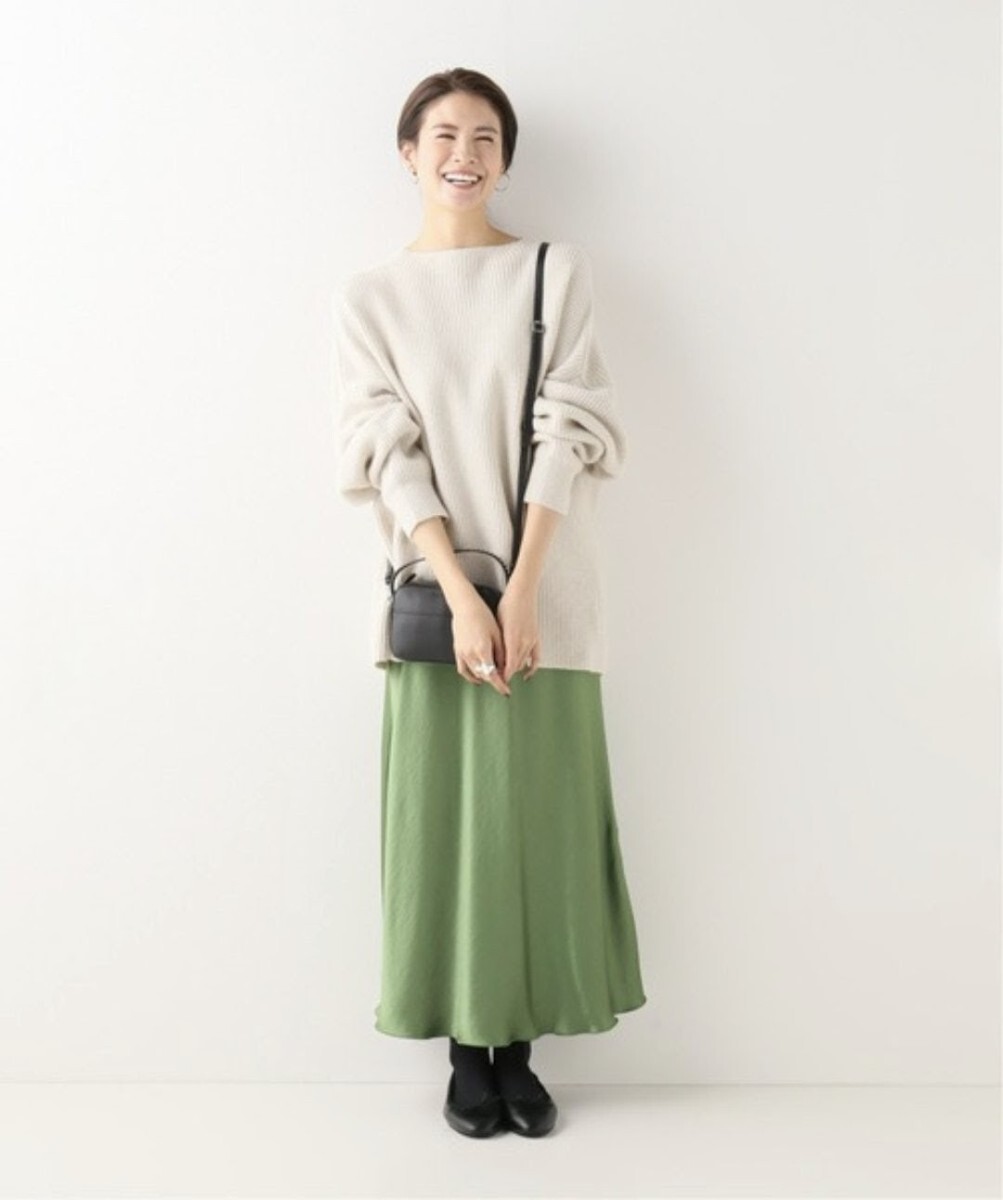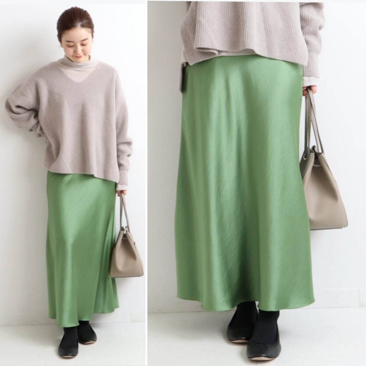 サイドスリットが軽やかなサテンスカート。ストレッチ性がある地厚のサテンをバイアスで使用し、縦長で裾が揺れる女性らしいシルエットに拘りました。細かいワッシャー感でシワも目立ちにくく、上品な光沢のサテンです。幅広いデザインのトップスと相性の良い、オールシーズン使える万能アイテム。春まで使えるペールトーンのカラーです。