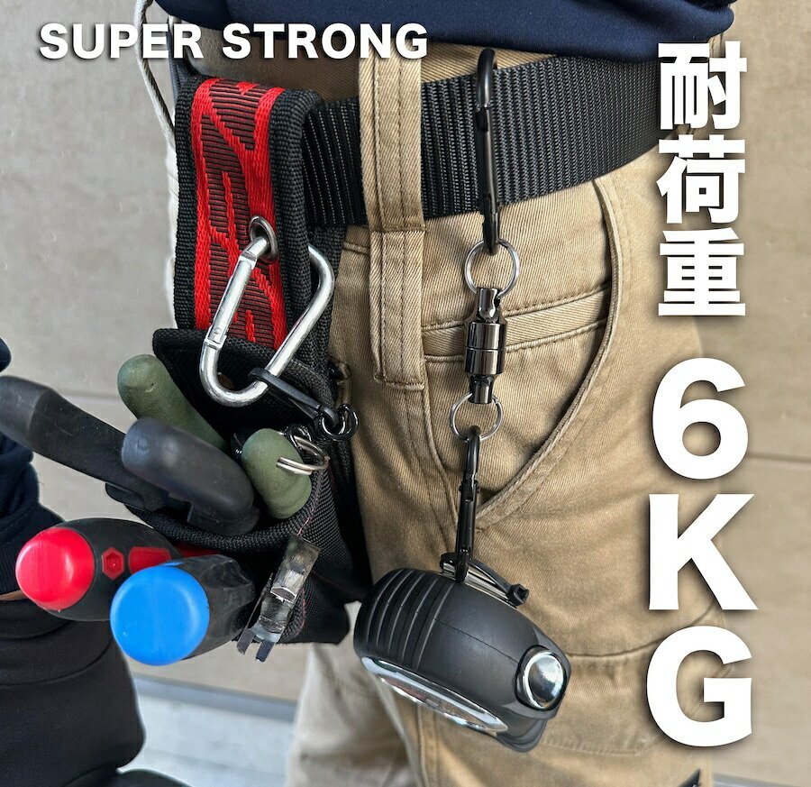 当製品SUPER STRONGは大切な道具が脱落・落下することを防ぐために、強力なネオジウム磁石を調達して従来無かった耐荷重6kgを実現しました。