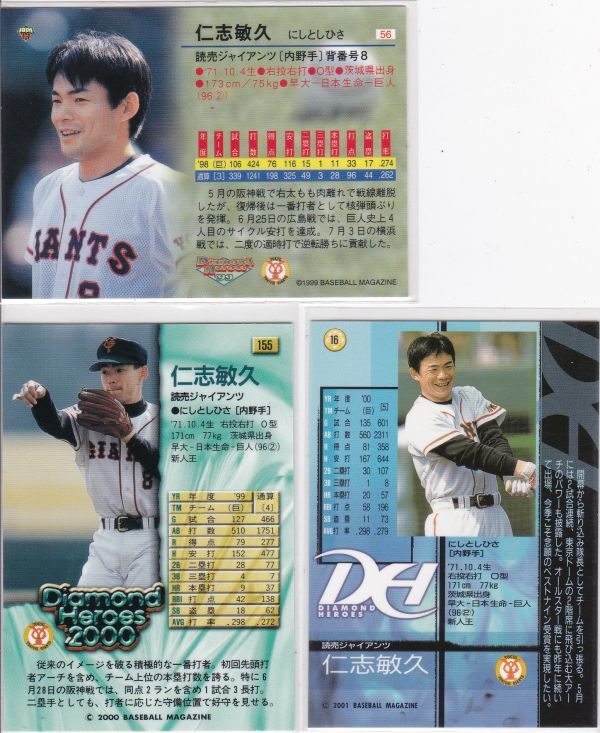 ●1999,00,01BBM/DH 【仁志 敏久】 BASEBALL CARD 3種 No.56,155,16:巨人