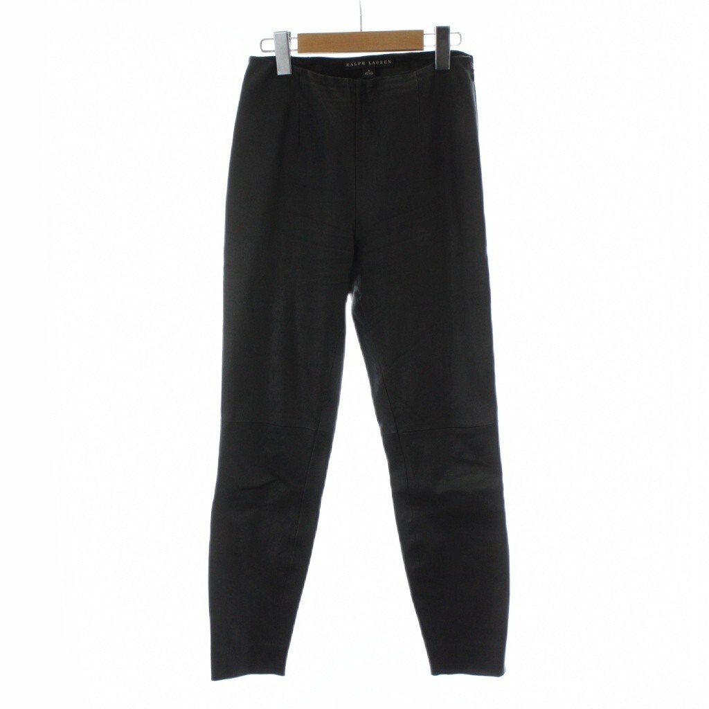 ラルフローレン RALPH LAUREN ラムレザーパンツ 4 黒 ブラック ストレート ロング丈 ボトムス /PP ■GY19 レディース