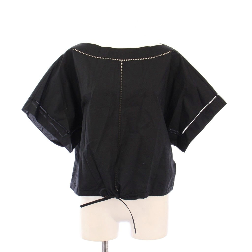 セオリー Theory セットアップ ワイドパンツ ジップフライ タック シャツ ブラウス プルオーバー ショート丈 半袖 ボートネック 2 S 黒