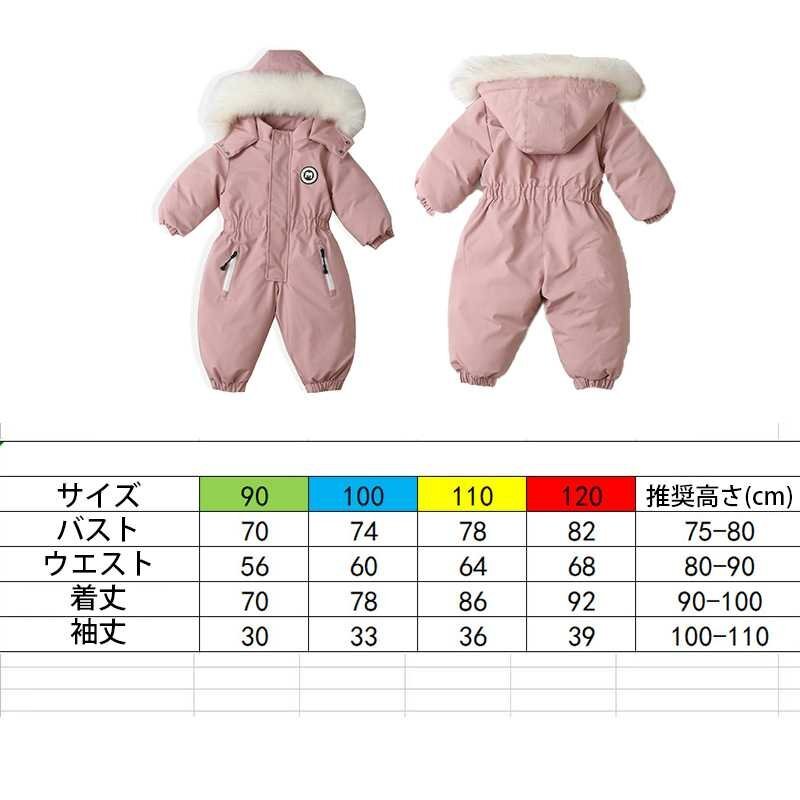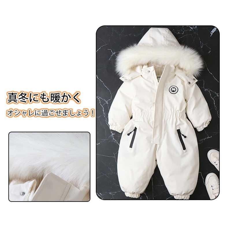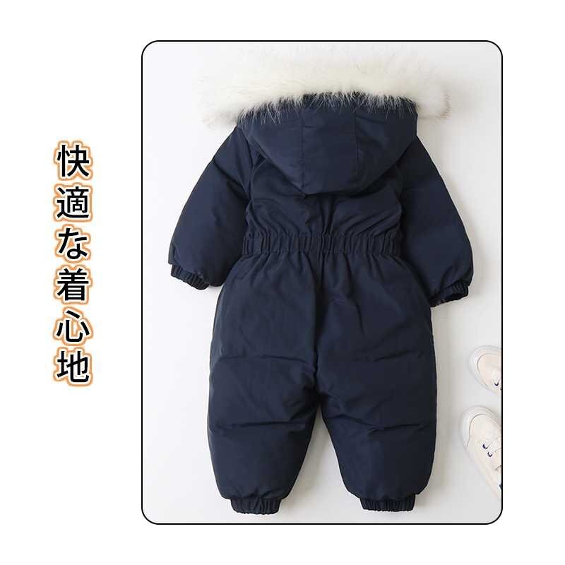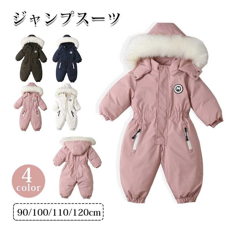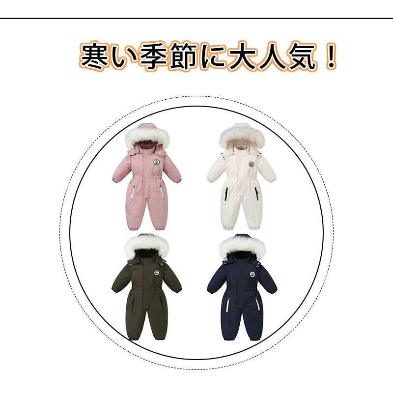 カバーオール スノーウェア ベビー キッズ ダウンフード付き 暖かい 前開き 軽い スノーウェア 防寒 防水 防風 ☆4色/90~120選択/1点