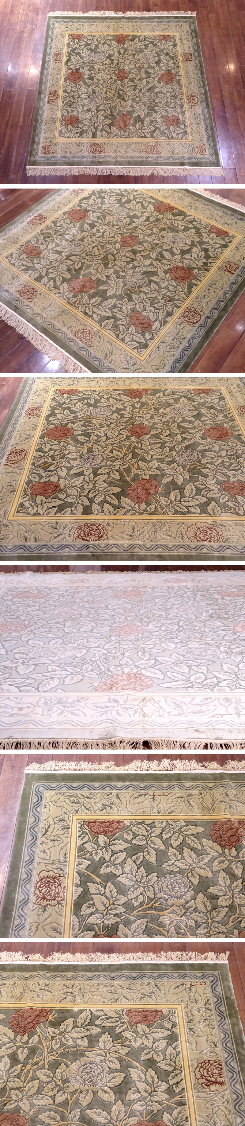 ∇花∇高級中国緞通 シルク・ウール 牡丹文様絨毯 203×201㎝ 敷物カーペット 53
