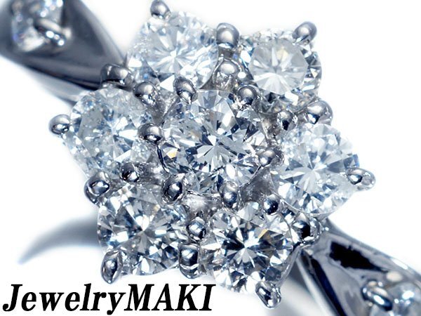高級ブランド【ジュエリーマキ】から、良質天然ダイヤモンド総計1.01ctを素敵に宝飾した、高級Pt850リングを1円から特別大放出致します!
