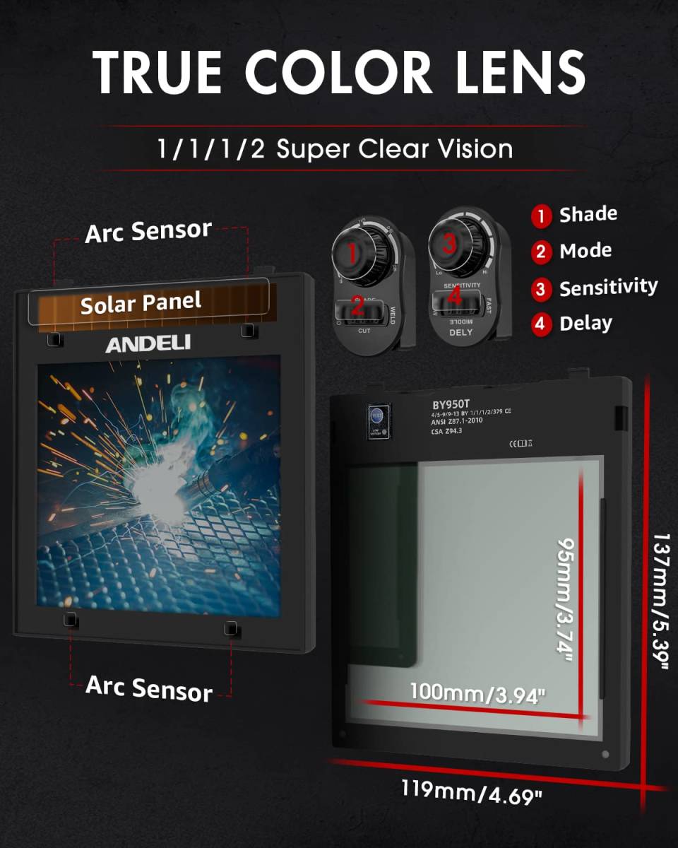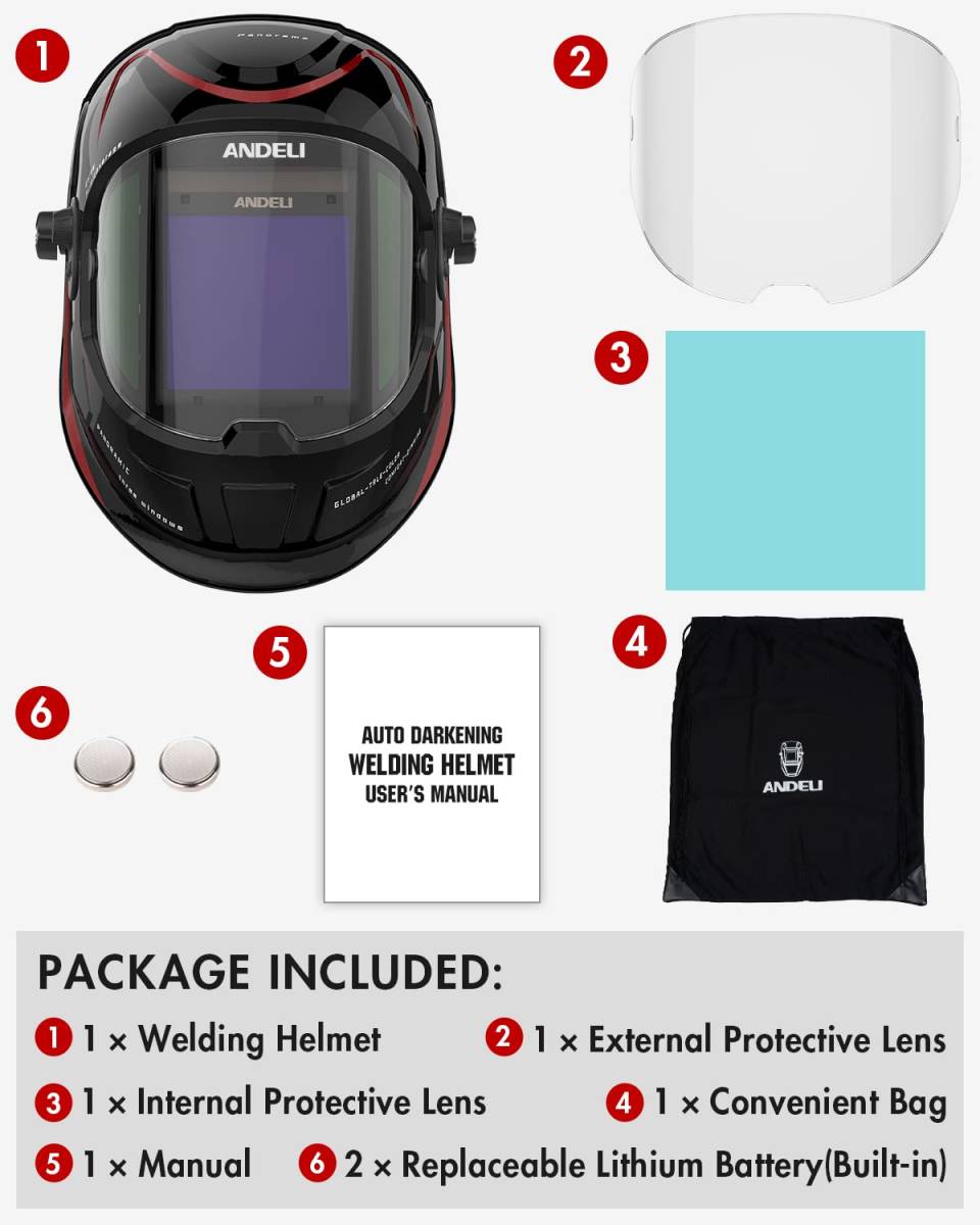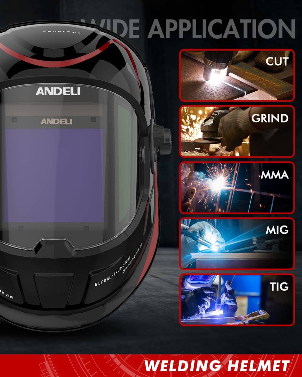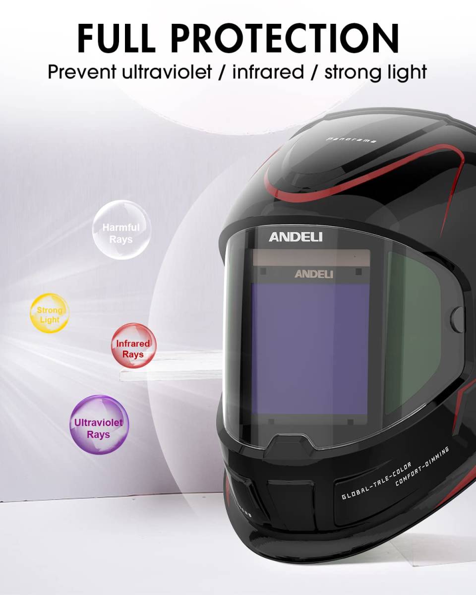 【新品】ANDELI 溶接面 4アークセンサー 自動フィルター 自動遮光溶接面 遮光度5-8/9-13 溶接ヘルメット 溶接マスク 電池交換可能 アカネコ