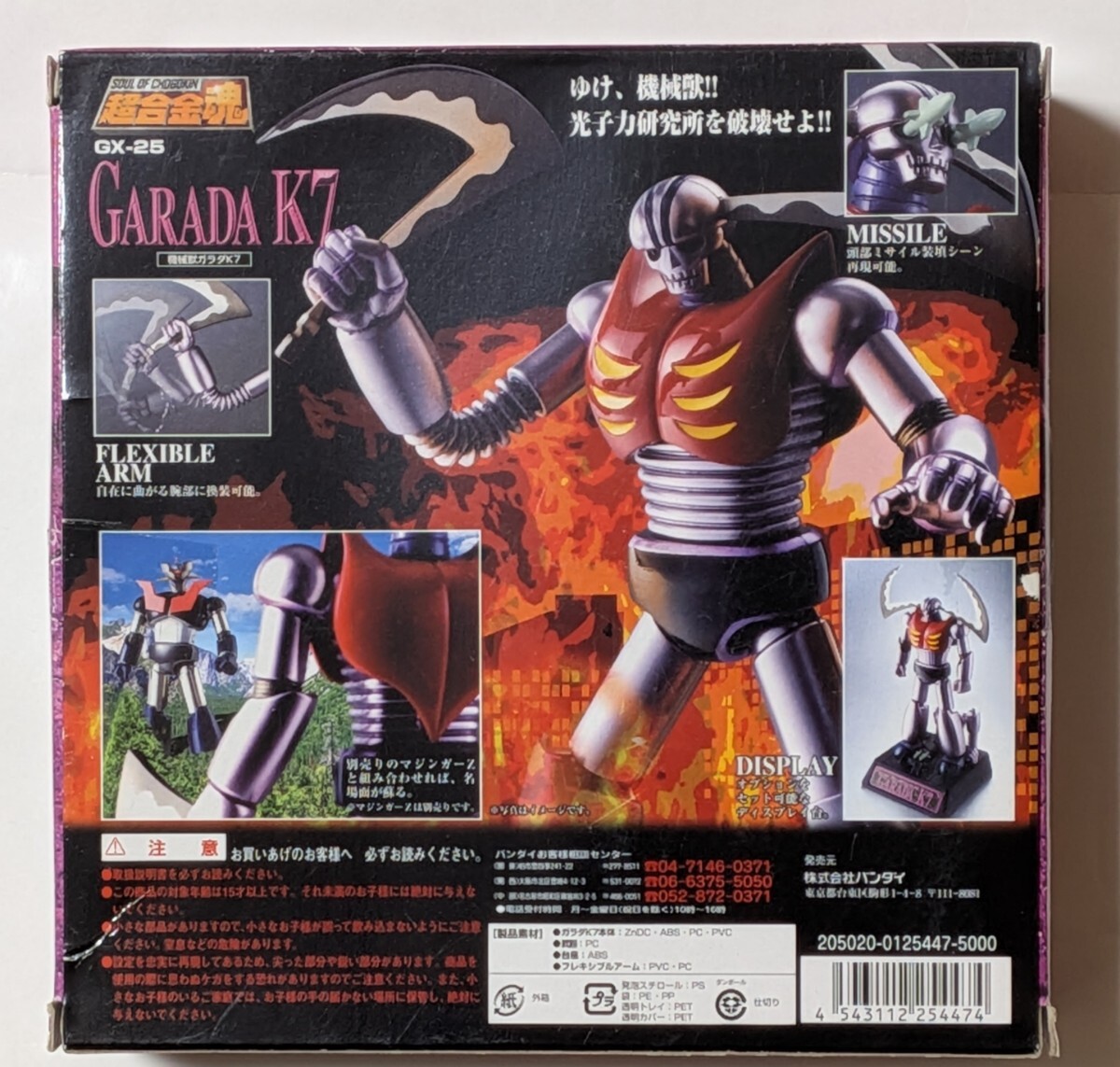 バンダイ超合金魂GX-25機械獣ガラダK7を出品します。中古品で室内保管していたものです。外箱には擦れや開封によるダメージがあります。中のパーツは未開封で、本体は発泡スチロール詰めのまま未開封です。そういう商品の状態を御理解の上御入札ください。ノークレームノーリターンでお願いします。発送はおてがる配送(ヤマト運輸)宅急便(EAZY)匿名配送となります。定形外郵便、ゆうパックには対応しておりません。よろしくお願いいたします。