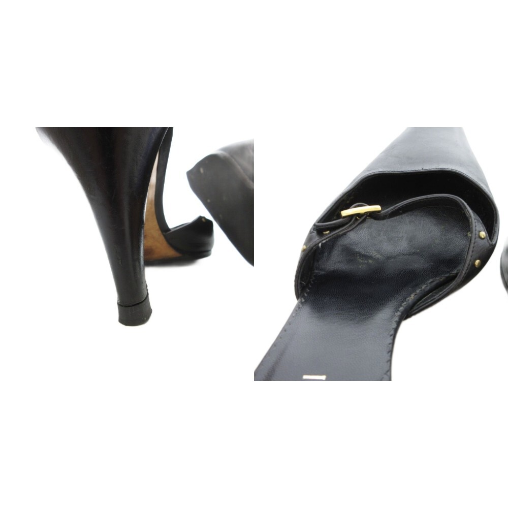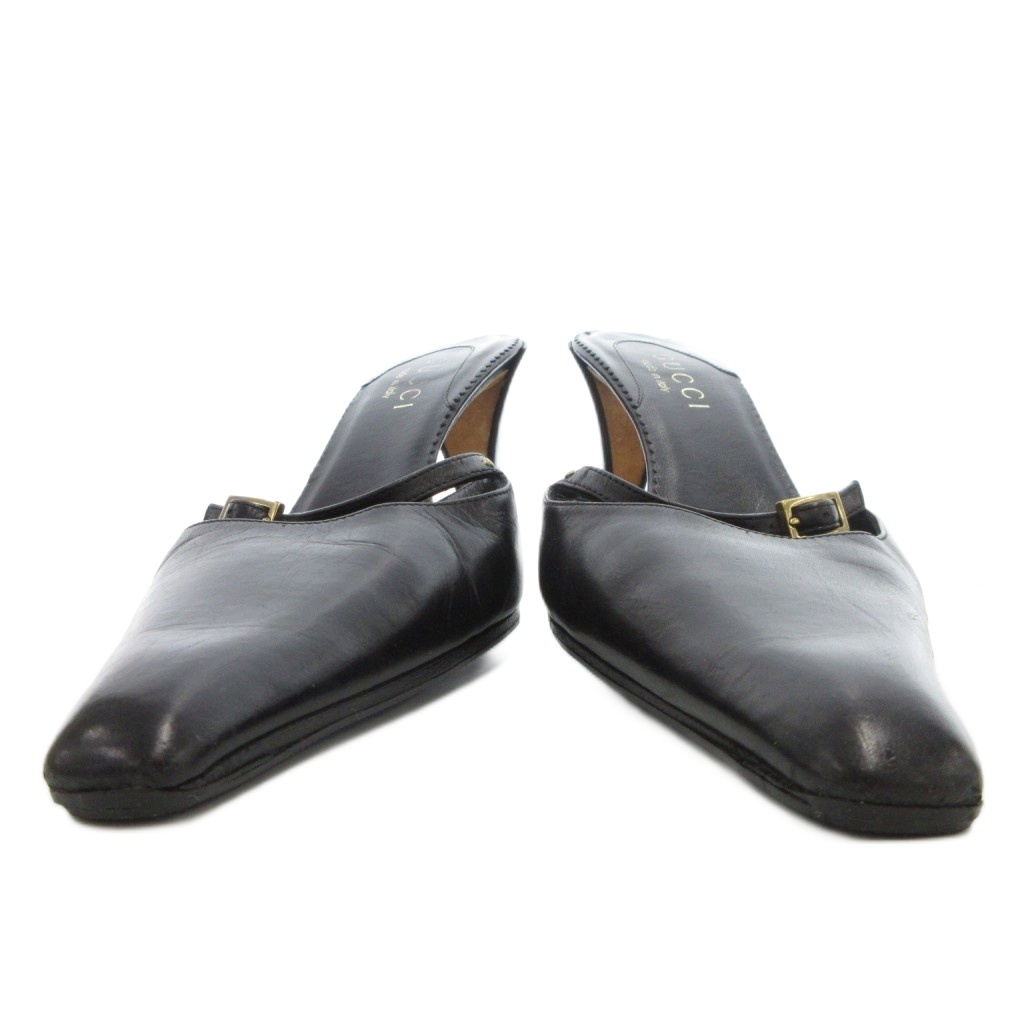 グッチ GUCCI ミュール サンダル 本革 レザー 36.5 黒 ブラック /UO ■GY62 レディース