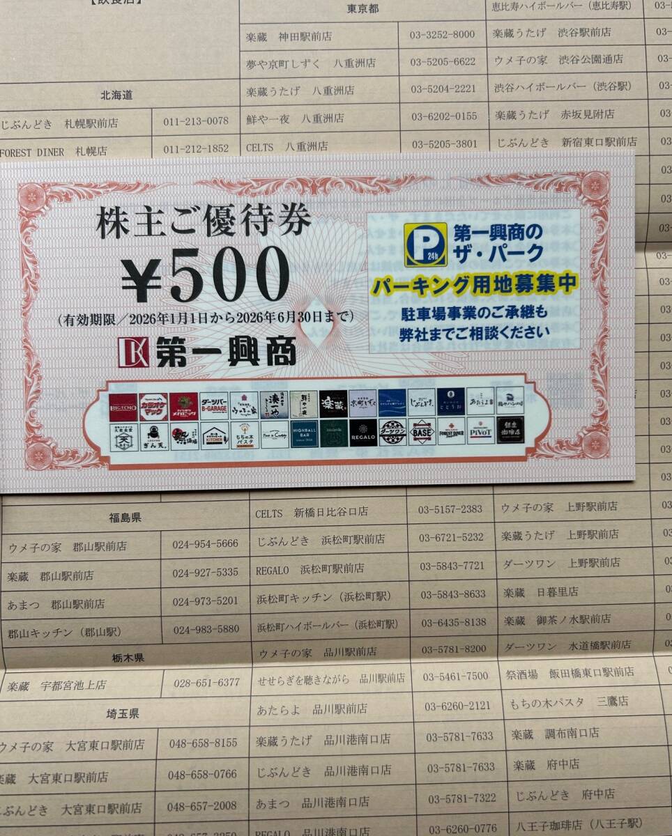 第一興商株主優待券5,000円分★2026年6月末まで ビッグエコー,ウメ子の家,楽蔵