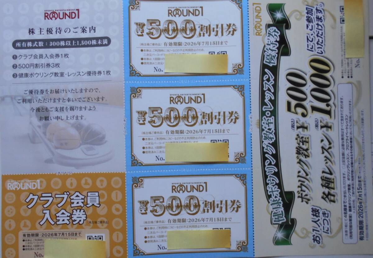| ♪ご覧いただき有難うございます♪ ラウンドワン 株主優待 ①クラブ会員入会券 有効期限2026年7月15日まで ②500円割引券3枚 有効期限2026年7月15日まで ③健康ボウリング教室・レッスン優待券1枚 有効期限2026年7月15日まで |