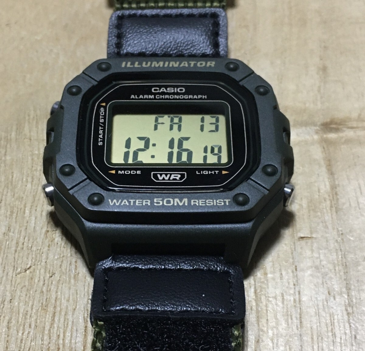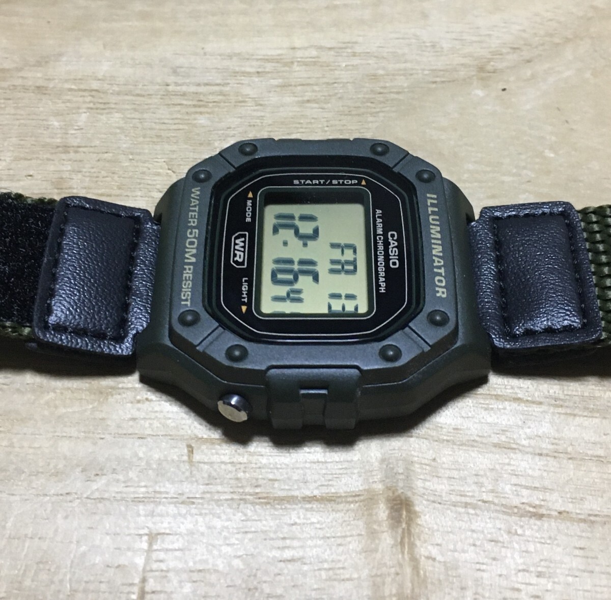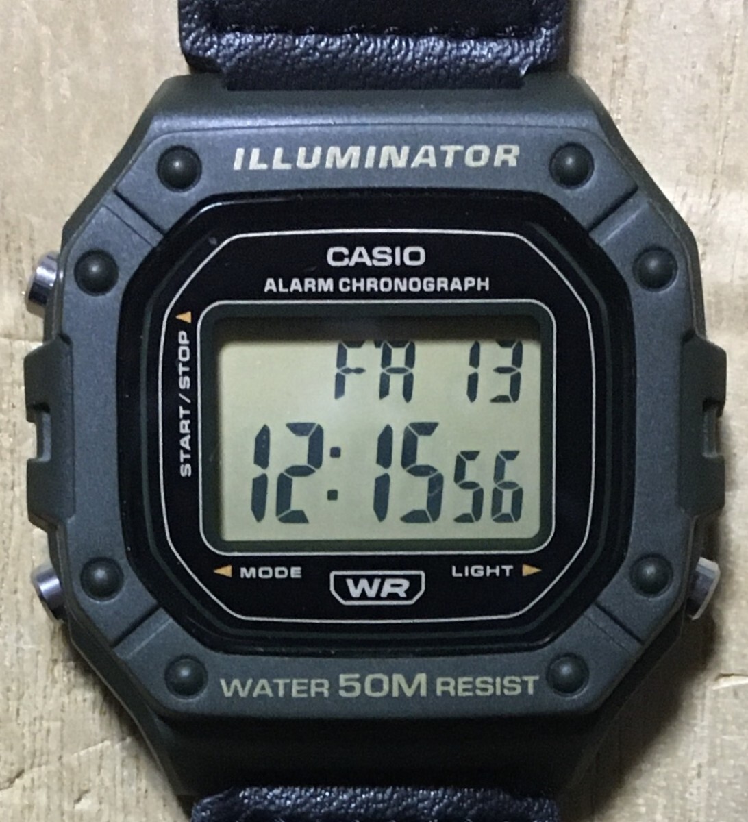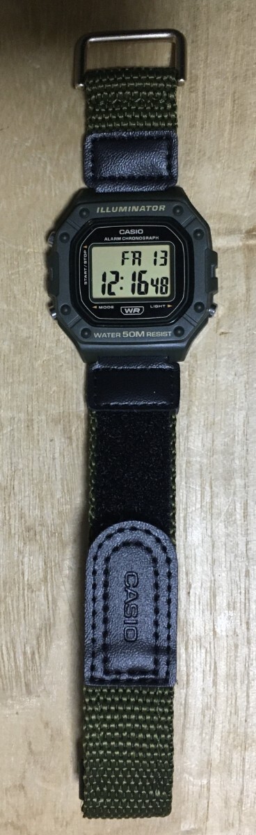 [3日間のみ使用の美品] CASIO W-218 ミリタリーグリーン オフィシャルによるG-SHOCK DW5600オマージュ機の希少ベルクロバンド使用!!を出品させていただきます。