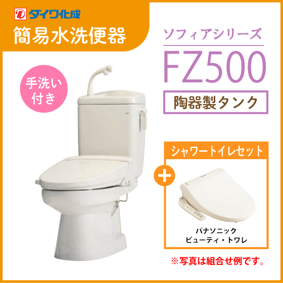 簡易水洗便器 簡易水洗トイレ クリーンフラッシュ「ソフィアシリーズ」 FZ500-H00(手洗付)・ビューティートワレセット ダイワ化成