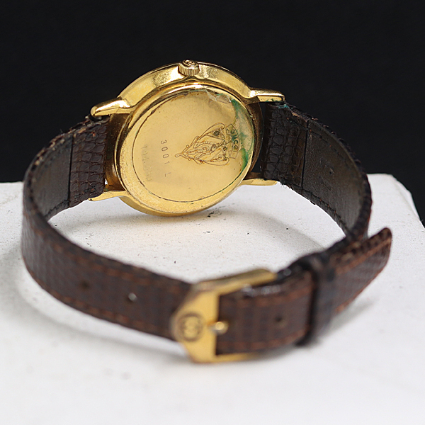 1円 稼働 グッチ3001L QZ ゴールド文字盤 レディース 腕時計 0275000 12ANT KMT