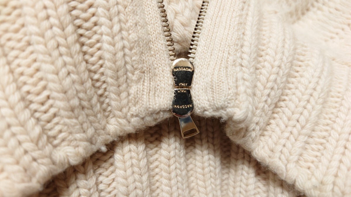 フロントがWジップになっており上まで締めるとタートルネックのニットの様に使って頂けます。