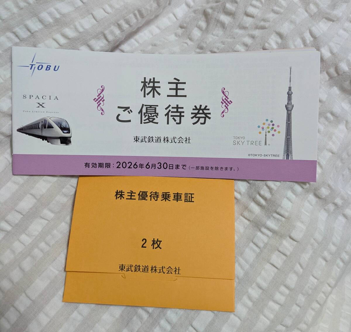 東武鉄道 株主優待 乗車証2枚とご優待券1冊