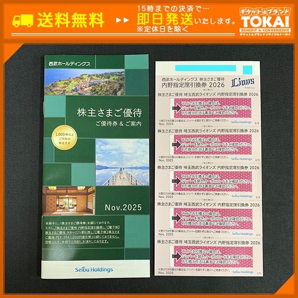 FR4e [送料無料] 西武ホールディングス 株主さまご優待冊子 (1,000株以上ご所有)×1冊 西武ライオンズ内野指定席引換券 ×5枚