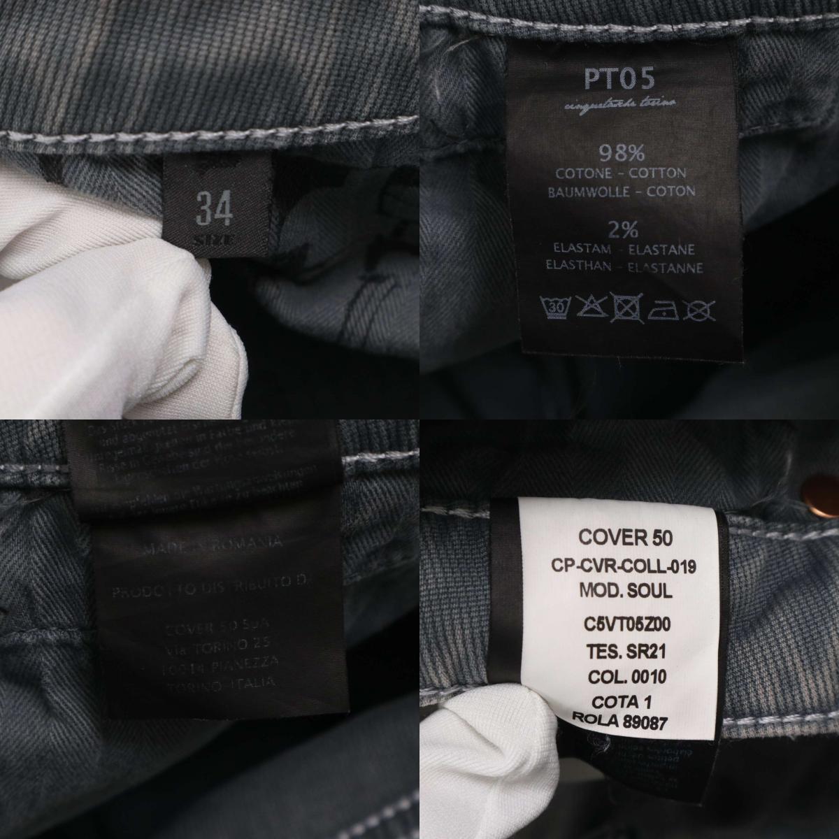 PT05 ピーティーゼロチンクエ 通年 USED加工★ ストレッチ ストライプ テーパード パンツ Sz.34 メンズ グレー