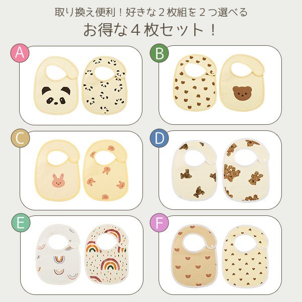 ☆防水 U字コットンスタイ 4枚セット ※ご購入されましたらオーダーフォームに以下の柄を「2つ」ご連絡ください。 D.テディベア E.にじ F.らぶりー ※お選び頂いた柄「2枚」ずつのセットとなります。 【商品名】 防水 U字コットンスタイ 4枚セット 【詳細】 赤ちゃんに負担をかけない柔らかコットン素材のスタイセットです♪ 吸水性・防水性・通気性に優れた3層構造で汚れをしっかりキャッチ&清潔さをキープ! 留め具はスナップボタンでワンタッチ。替えに困らないお得な4枚セットです! 【柄(各2枚組)】 A.ぱんだ在庫切れ B.くま在庫切れ C.うさぎ在庫切れ D.テディベア E.にじ F.らぶりー ★各柄ごとに2枚ずつのセットとなります。 A~Fでお好きなセットを2つお選びいただけます。 【サイズ】 全体 約28cm×20cm 内径 約7cm×9cm ※平置き手採寸につき1~2cmほどの誤差が生じる場合がございます。 【素材】 コットン 他 ( まとめ購入 ナチュラル よだれ 食べこぼし ミルク 食事 保育園 新生児 ママ 0歳 1歳 2歳 女児 男児 幼児 ボタン エプロン 離乳食 人気 吸水 防水 通気性 キッズ U型 スナップボタン サイドボタン 洗濯 交換 選べる 4枚 パンダ クマ ウサギ 虹 生成り 吐き戻し 清潔 速乾 肌にやさしい 快適 よだれ掛け ) |