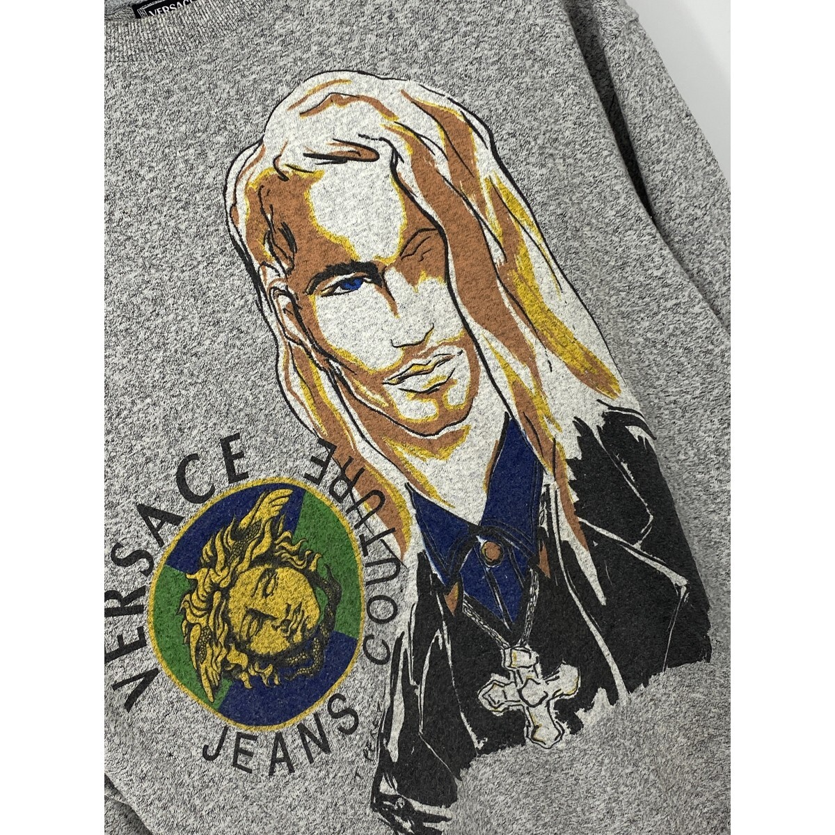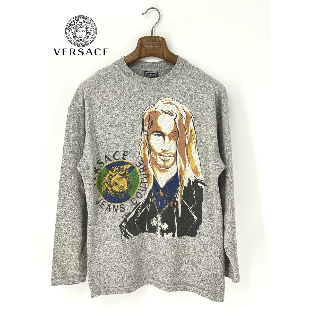 A8666/美品 春夏 VERSACE JEANS COUTURE ヴェルサーチ コットン 長袖 デカプリント メデューサ ロンT Tシャツ カットソー M 灰色 メンズ