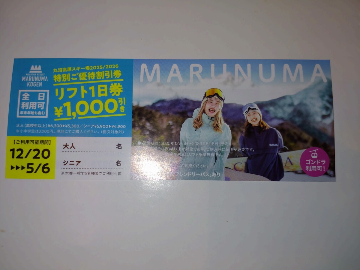 商品名 : 丸沼高原スキー場リフト1日券1000円割引券6枚