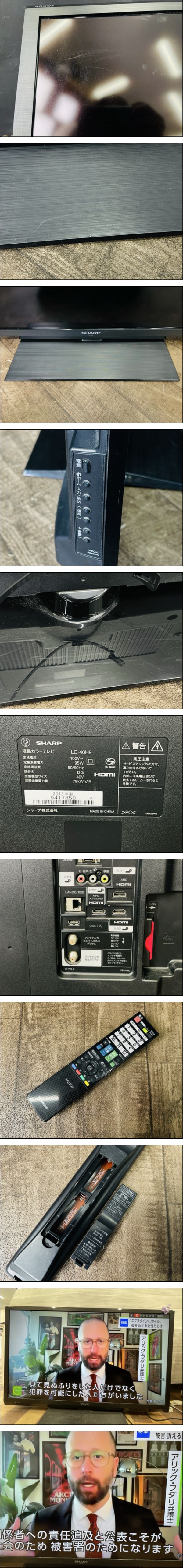 *タイトルの末尾は管理番号となります。 詳細 型番: LC-40H9 製造番号: 9417850 年式: 2013 年製 付属品: リモコン(電池は付属しません) , BCASカード サイズ(幅/奥行き/高さ): 約 93.5/8/61.5 cm ※素人寸法です。若干の誤差はご了承下さい。 状態 状態ランク E 目立ったキズ、汚れがある