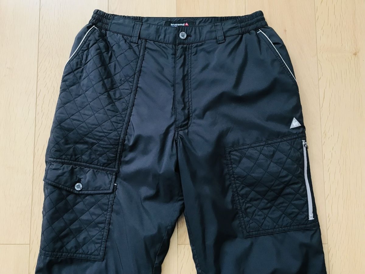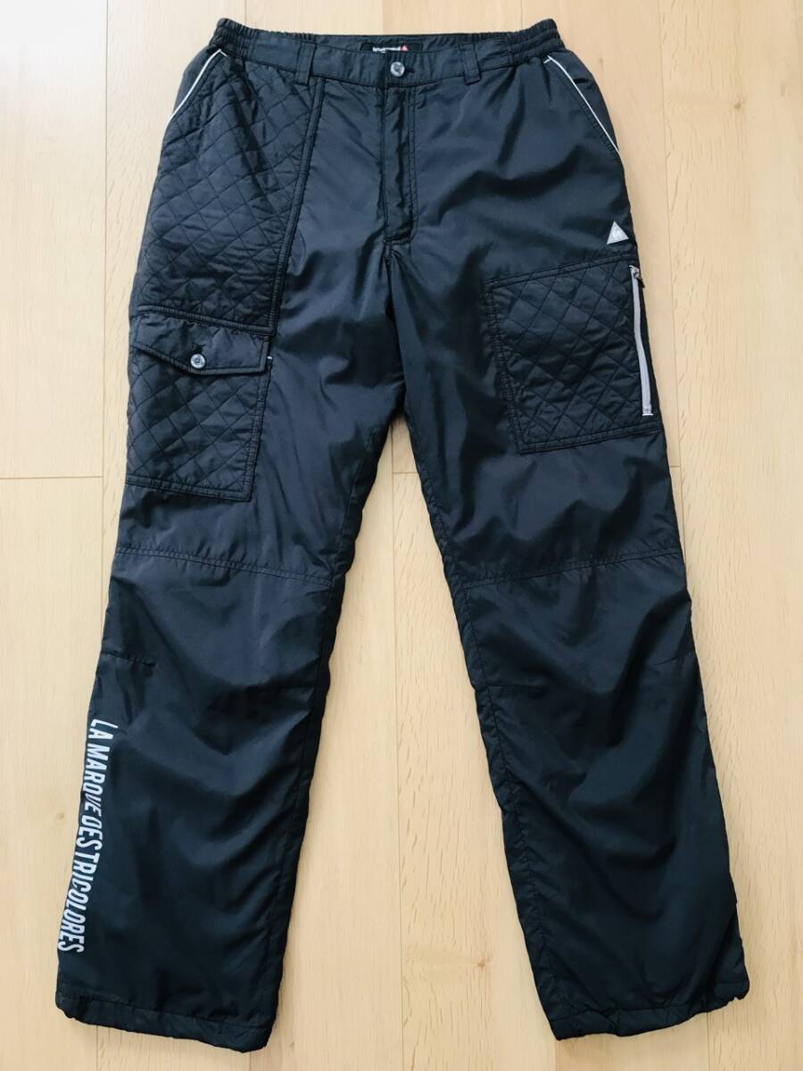 | サイズ | 表記L(実寸/ウエスト:78cm~ もも幅:34cm 裾幅:22cm 股上:30cm 股下:80cm)| 色 | 黒 | 素材 | 表地:ポリエステル100% 裏地:ポリエステル 中わた:ポリエステル100% | コンディション | 7.5 | |