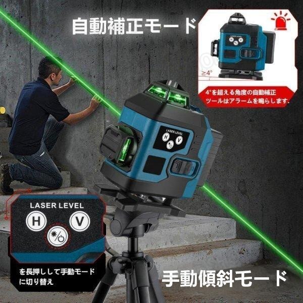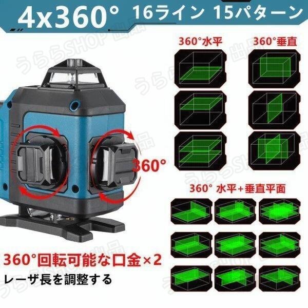 1円 レーザー墨出し器 16ライン 4x360°グリーンレーザー バッテリー*2 水平器 IP65防塵防水 輝度調整 リモコン操作 25メートル xhw0112
