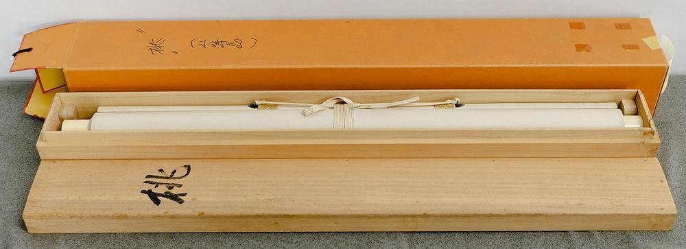 【真作】【WISH】戸田英二「桃」日本画 掛軸 絹本 共箱 柔光に包まれた清雅な桃   〇京絵卒 師遥邨 日展会友 #25110052