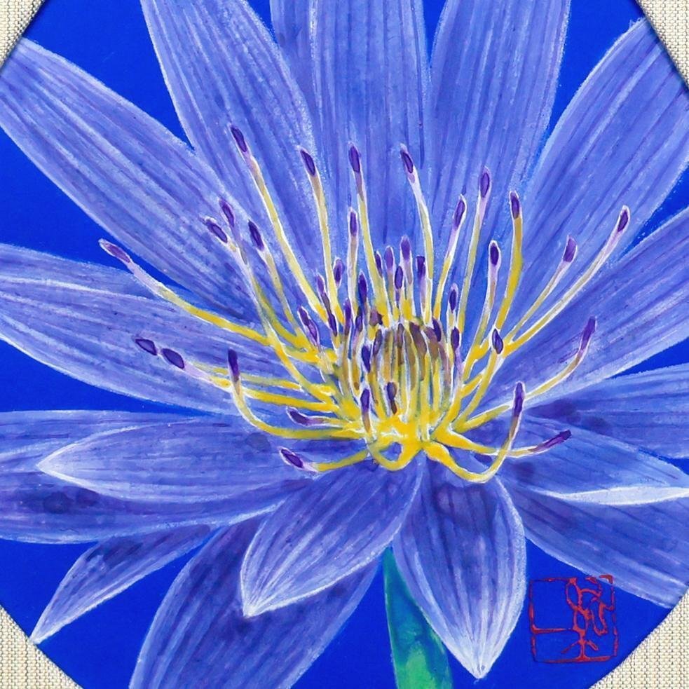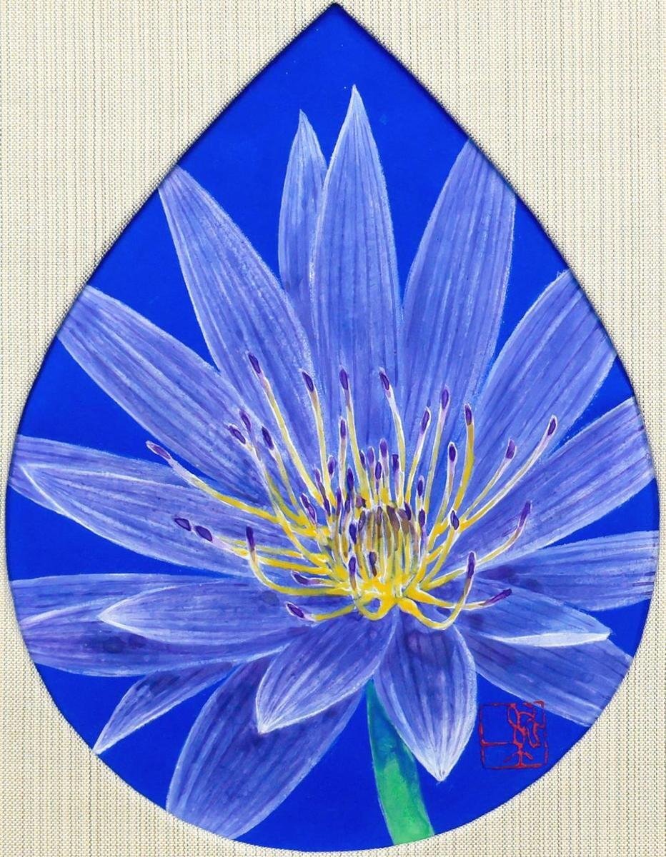 【真作】【WISH】石踊紘一「水蓮」日本画 共シール ◆深き青に息づく花の輝き   〇女性像巨匠 東京藝術大学卒業 創画会会友 #25122247