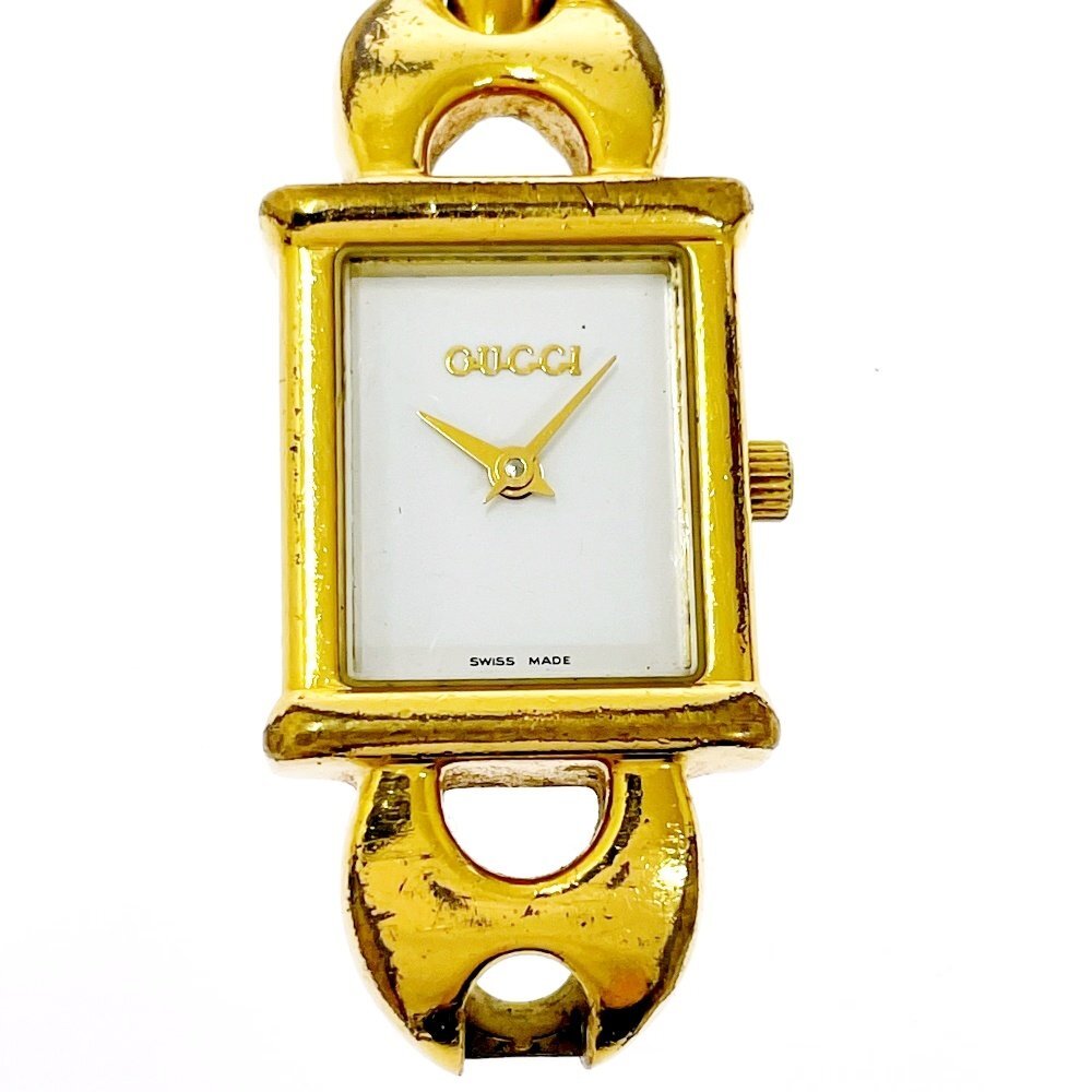 【1円スタート】【訳あり品】GUCCI グッチ 1800L チェンジベルト GP ホワイト文字盤 クオーツ レディース腕時計 529809
