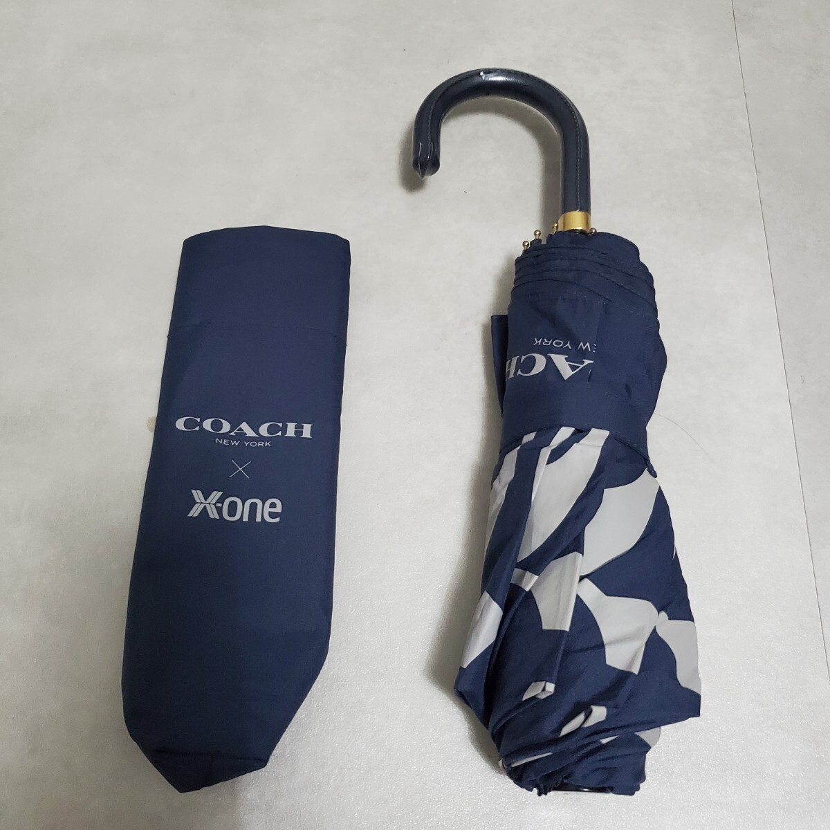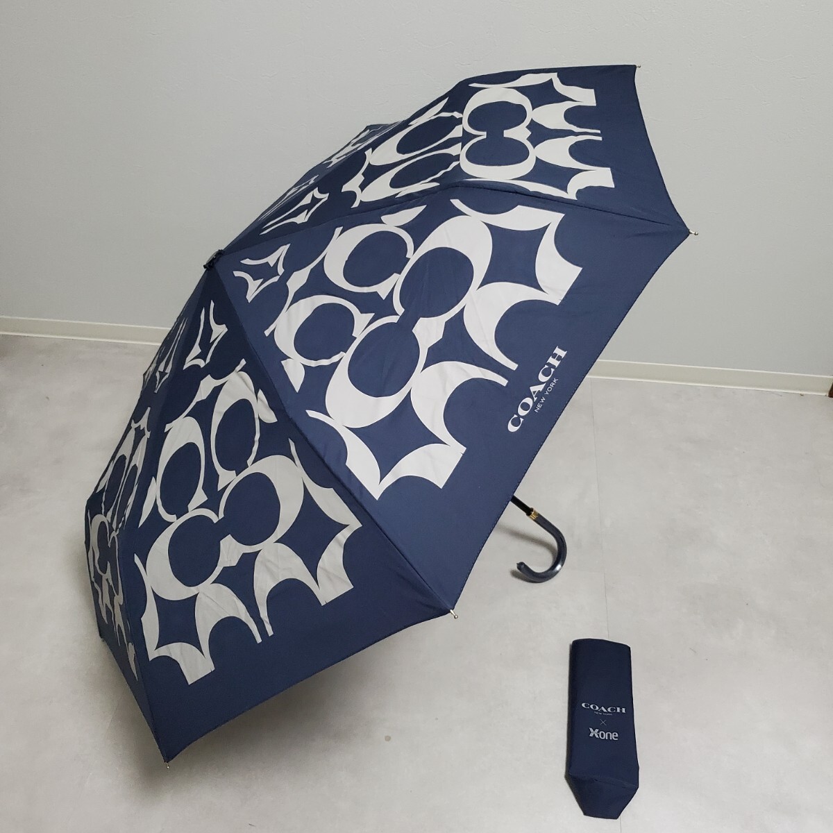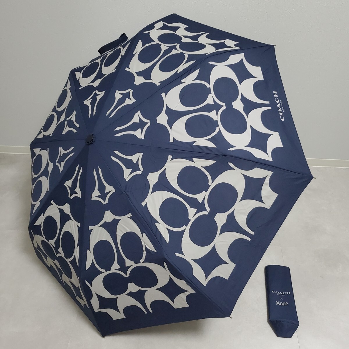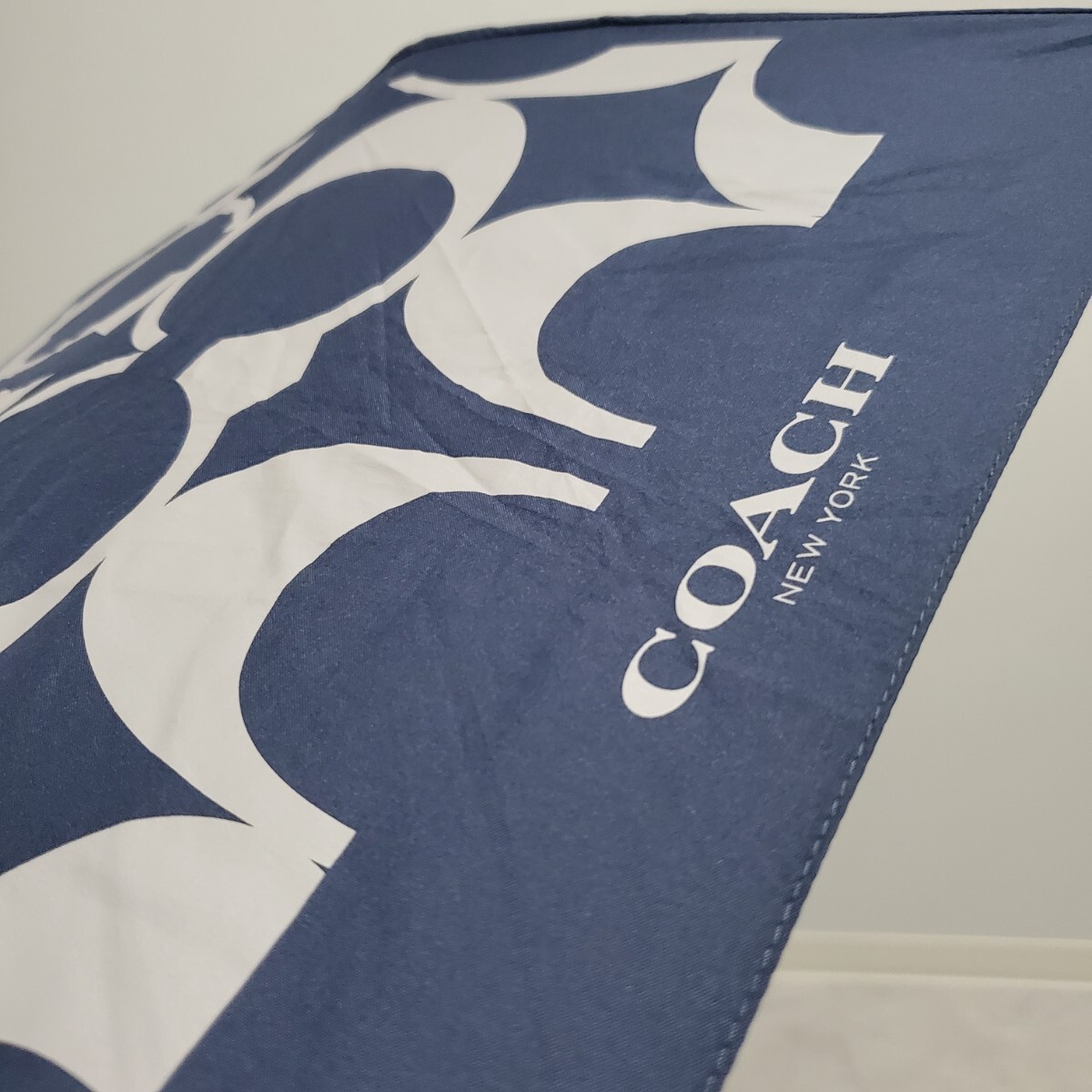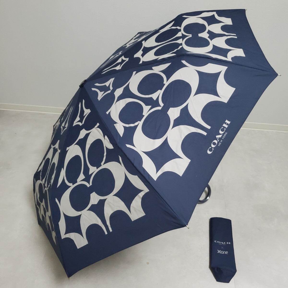 新品/COACH コーチ シグネチャー柄 折りたたみ傘 ネイビー 雨傘 晴雨兼用 ロゴ ユニセックス男女兼用 ヴィンテージ ブランド傘