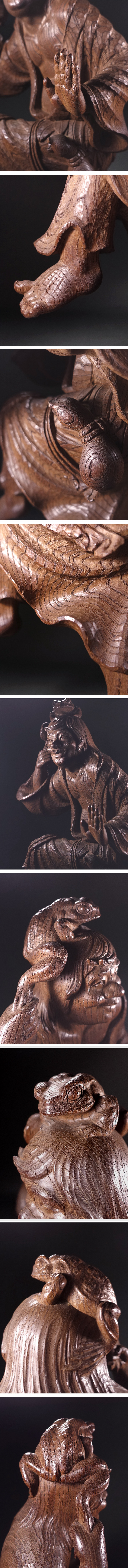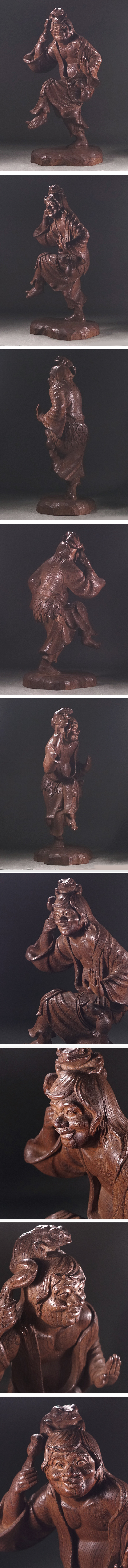 頭に蝦蟇を乗せて楽しそうにお道化る仙人の姿を巧みに彫刻した一作です。