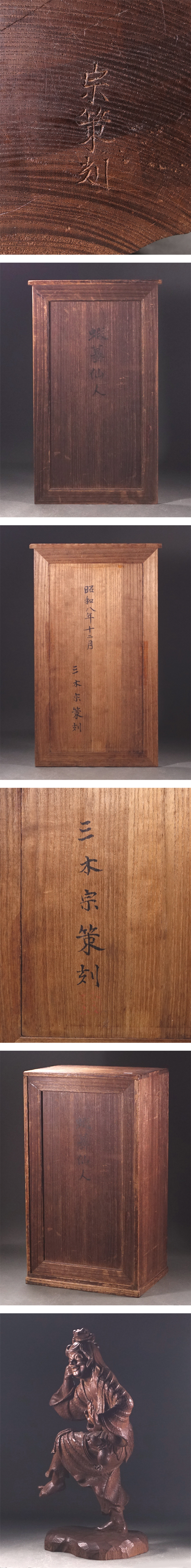 本物保証!     山本瑞雲に師事して光雲派の伝統的仏像彫刻を受け継ぎ、文展や帝展で作品を発表。帝展委員、帝展審査員を経て新文展審査員に推挙され、仏教彫刻を中心とする作品を残した名彫刻家【三木宗策】(1891-1945)作。
