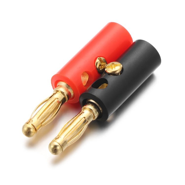 バナナプラグは、プラグ部分にバネや膨らみがあり、ソケットにしっかり固定できるので、振動によるノイズを軽減し、より高音質で音を楽しむことができます。