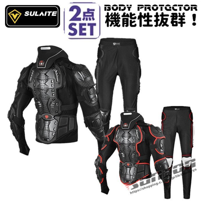 バイクウェア プロテクター ジャケット 背中 胸 肘 肩 腰 バイク ボディプロテクター パンツ 耐衝撃 通気性 2点セット
