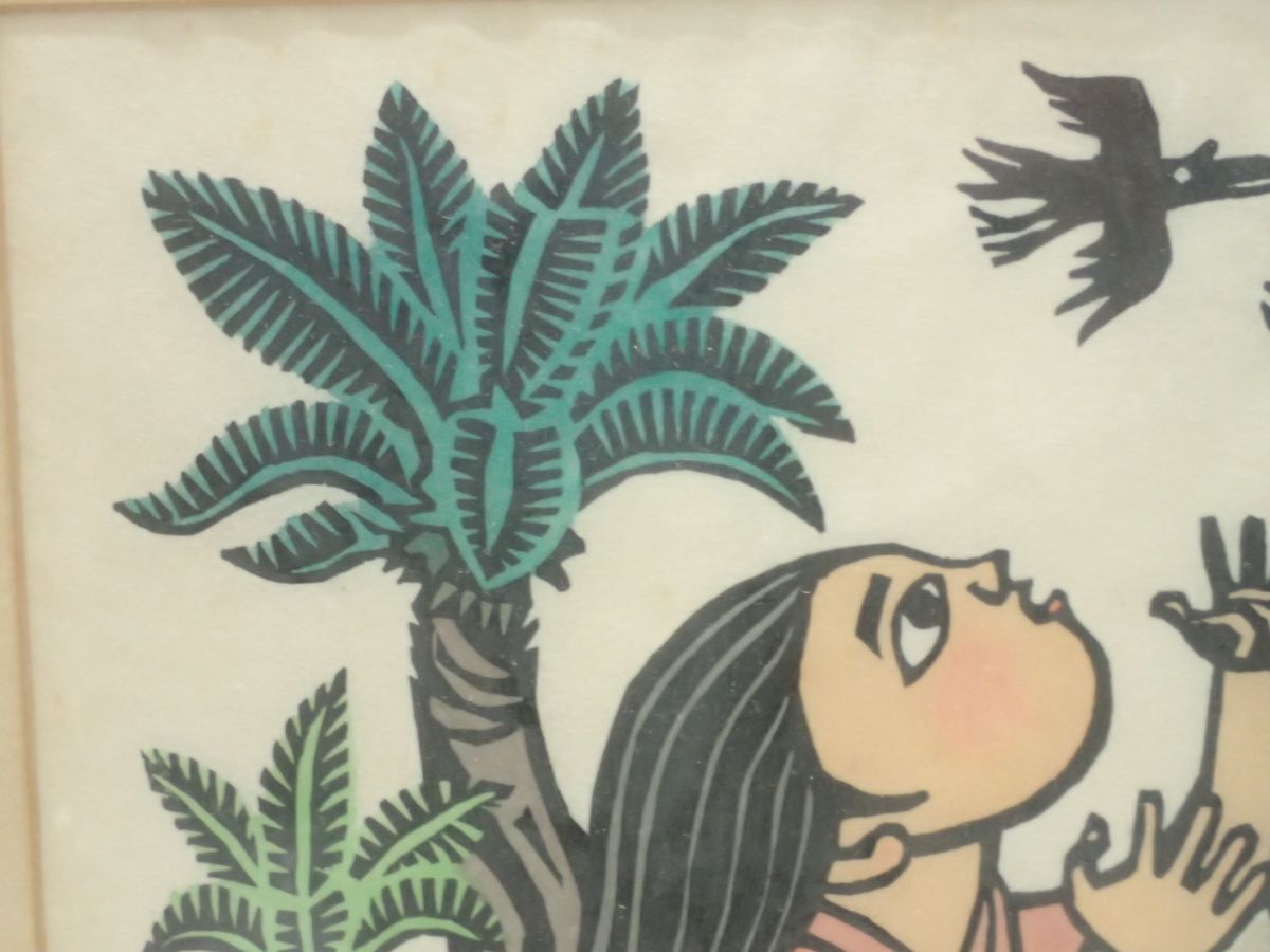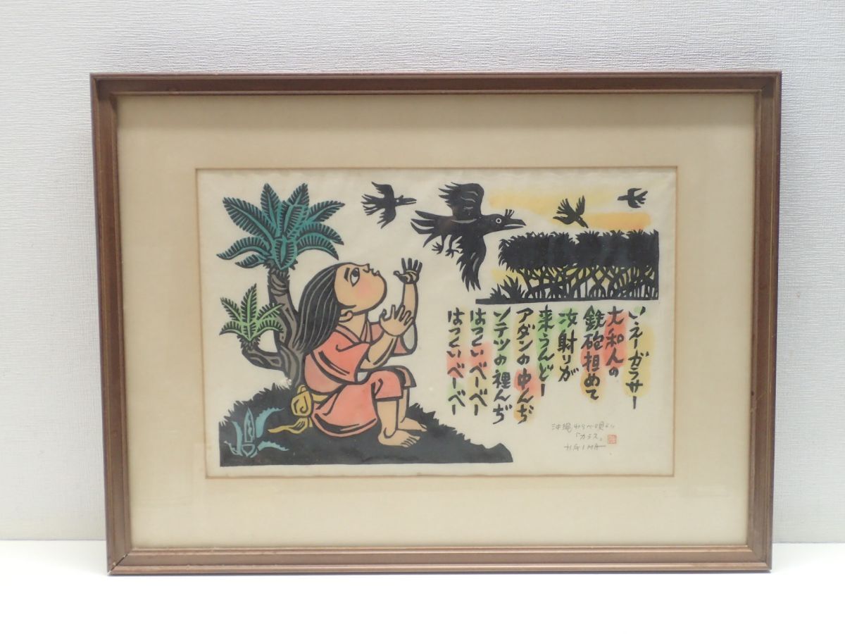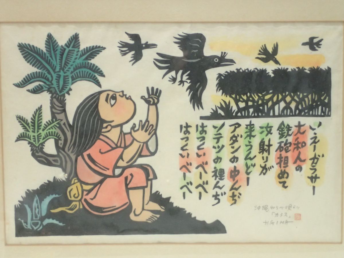 N026/14J〇真贋保証 儀間比呂志 沖縄わらべ唄より「カラス」 木版画 中古品〇