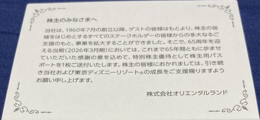 最新●送料無料★ オリエンタルランド 特別優待券1枚 東京ディズニーランド 東京ディズニーシー 有効期限2026年8月末