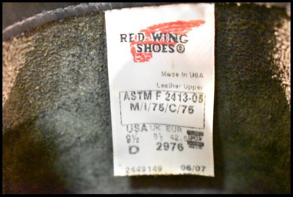【9.5D 良品 07年】レッドウィング 2976 ショート エンジニア 黒 ブラッククローム スチールトゥ ブーツ redwing HOPESMORE