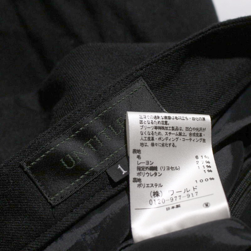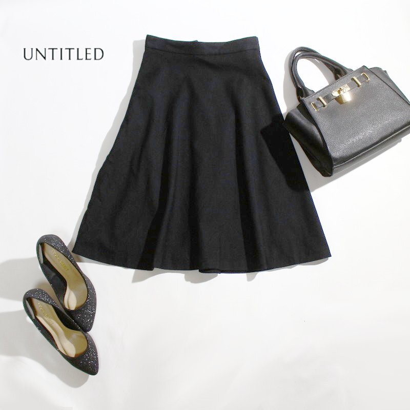 美品 アンタイトル UNTITLED 株) ワールド 秋 冬 ウール フレアスカート 1 ブラック 黒 毛61% 膝下丈 日本製 オフィス 通勤 フォーマル