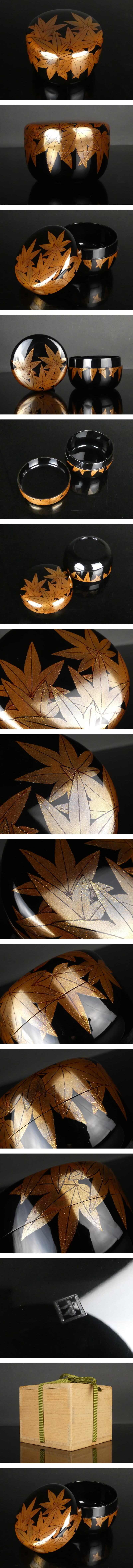 【都屋】才銘 黒塗 紅葉蒔絵 平棗 茶道具 R276 1221