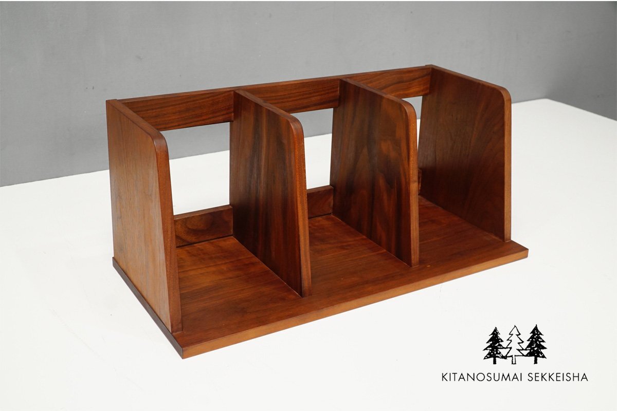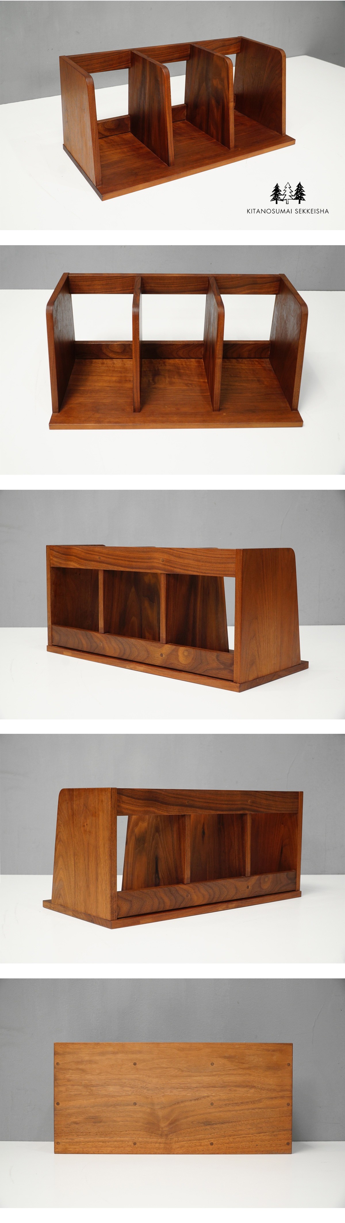 ◇北の住まい設計社のブックスタンド ウォールナット 3仕切りです。 北の住まい設計社の家具は、無垢材を使って家具をつくる場合、木の呼吸による伸縮に対応できる仕口や工夫が必要となります。木の伸縮を妨げないようにしながら、ねじれや歪みを防ぐための工法を職人の技術を活かして取り入れています。長くお使いいただくことを前提としているため、必然性のある機能的で美しいデザインを追求しています。 |