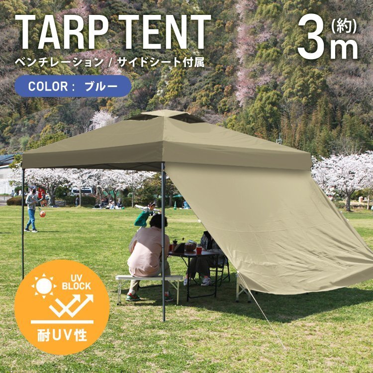 | 強い日差しでもこの3m×3mのタープテントは快適な日陰を作ってくれます! |