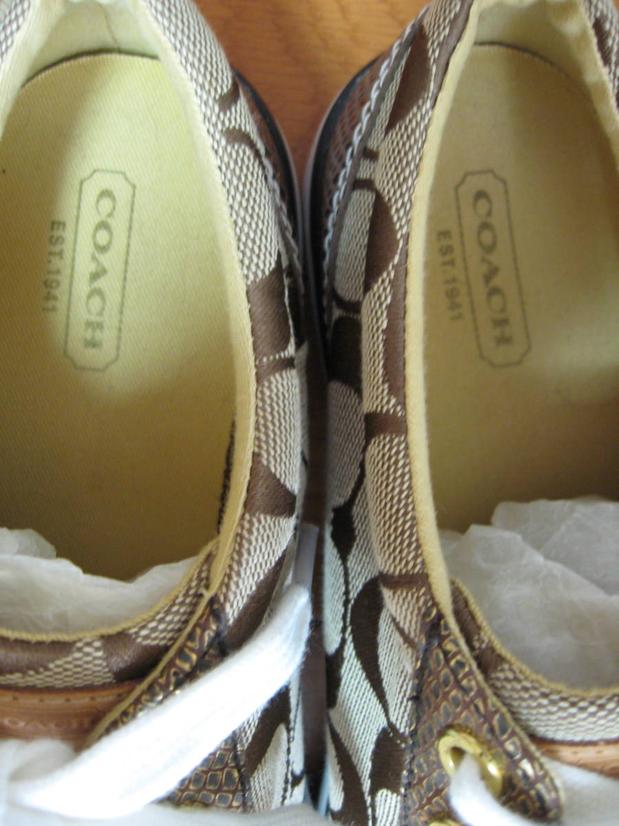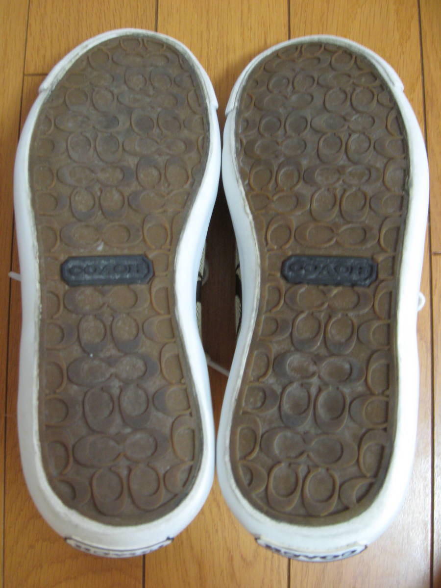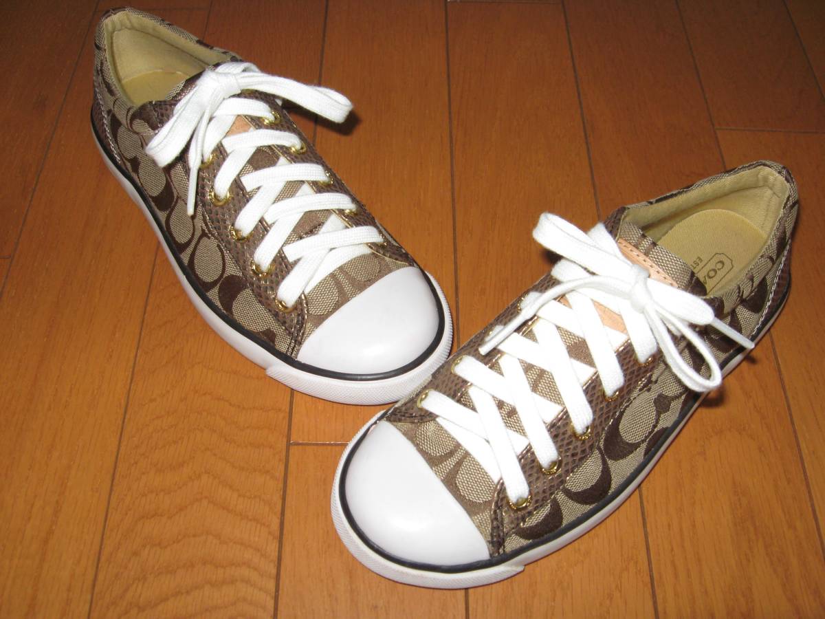 即決 コーチ COACH ローカットスニーカー 23.5cm ロゴ入りシグネチャース ベージュxゴールド