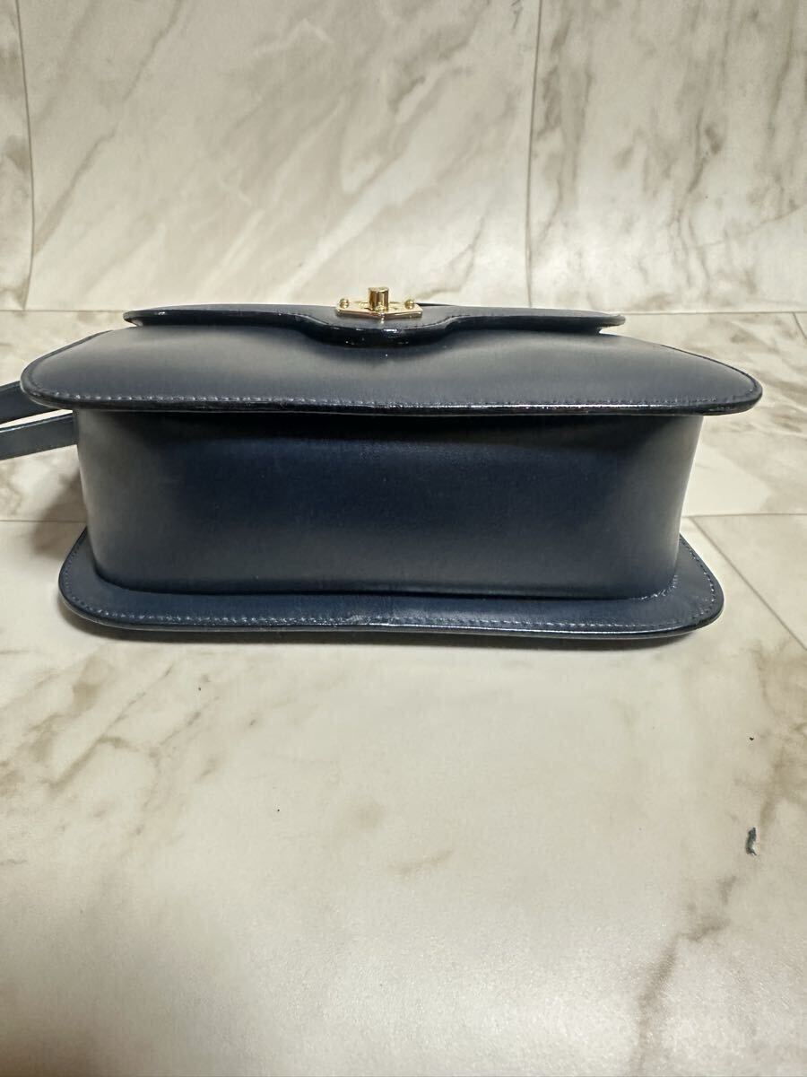 CELINE セリーヌ ショルダーバッグ パドロック ゴールド金具 カーフレザー ダークネイビー 黒系 ターンロック クロスボディ
