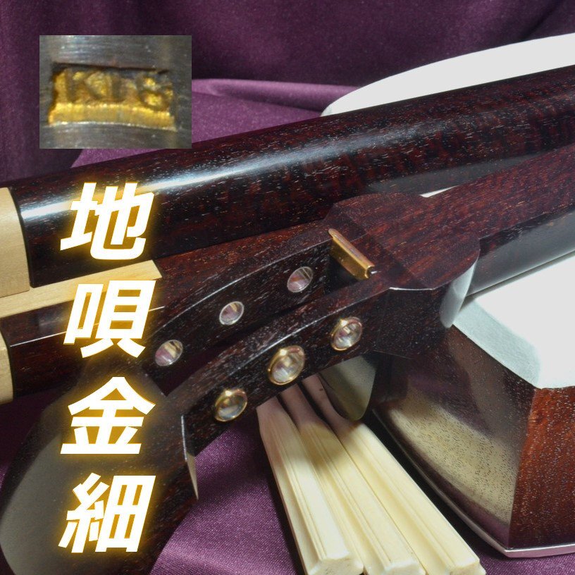 仕様 棹:紅木金細 二本溝 通常の長さ (正寸) 全長約98cm 棹の幅25.8mm(八分五厘) 厚み(重ね):29mm 横の膨らみ:29mm 下棹幅26.8mm 糸巻き:高級素材 福林K18 ・胴:花梨 子持ち綾杉胴 胴の大きさ 二分大胴 |