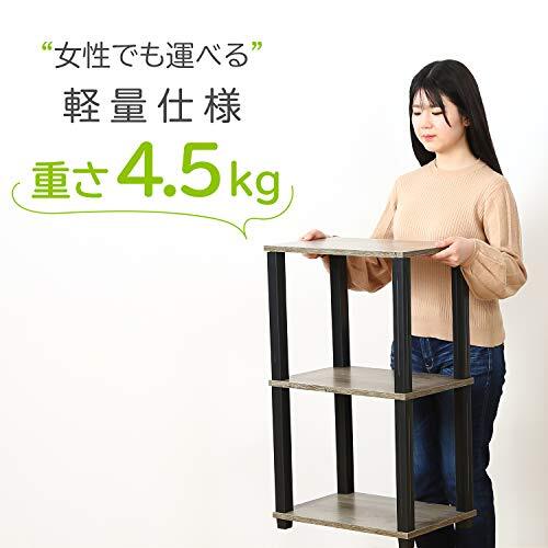 見せる収納としても楽しめるオープンラック。背面がないので、配線を気にせず家電も置くことができます。 組み立ては板に支柱をねじるだけで、工具もいらず簡単です。 場所を取らないスリムなデザインで、一人暮らしにおすすめです。 側板がないので、縦向きでも使用可能。 重さは4.5kgで、見た目に比べ軽量仕様。女性でも一人で運ぶことができます。