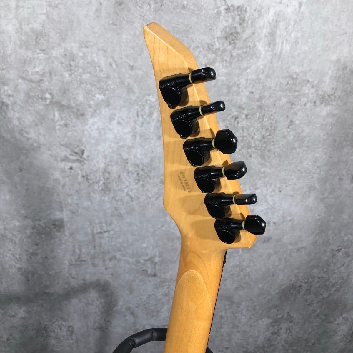 ロック式トレモロ搭載で安定したチューニング、思い切ったアームプレイが楽しめます。