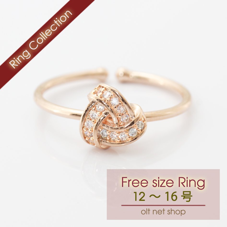 12号~16号 調整可能リング/新品 指輪 K18GP フリーサイズ トライアングル リボン りぼん 18金 ピンクゴールド レディース プレゼント 女性