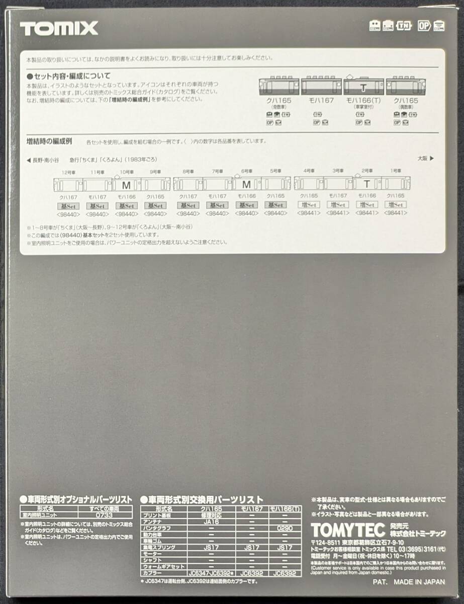 ■TOMIX 98441 国鉄 165・167系電車(冷改車・湘南色・宮原電車区)増結セット
