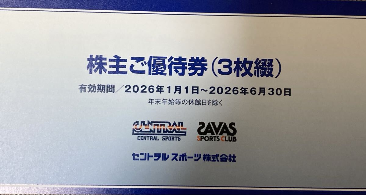 セントラルスポーツ株主優待券 3枚セット 有効期間 2026年1月1日〜6月30日
