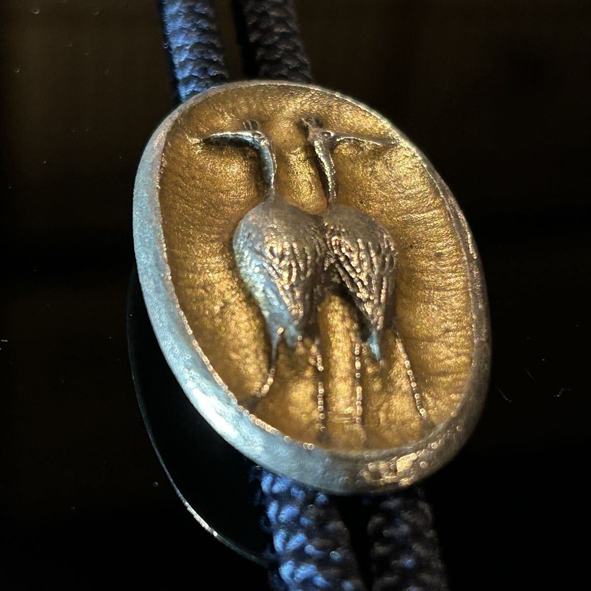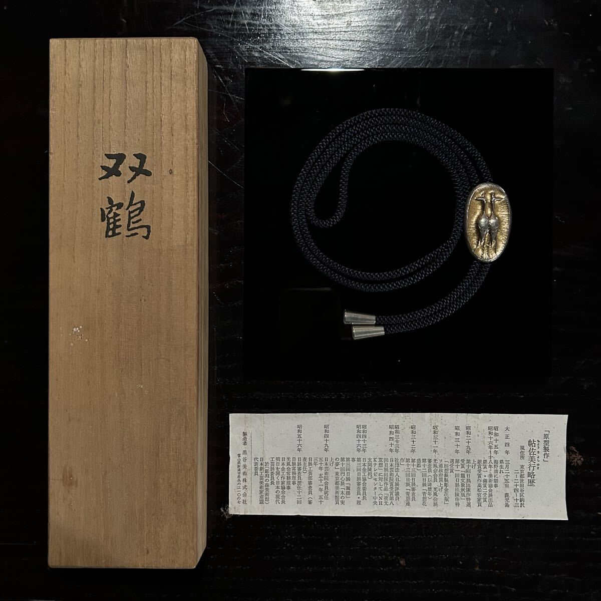 2羽の鶴を立体的に表現した意匠で、品位と格調を感じさせる作品です。